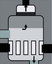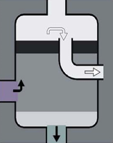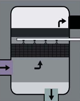 Bottom inlet – Top outlet with wide chamber